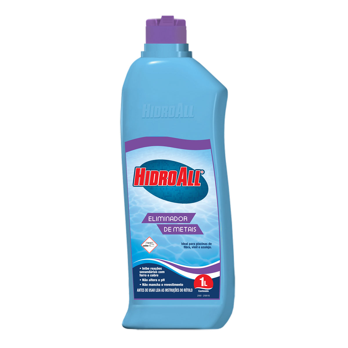 HidroAll Eliminador de Metais inibe a ação dos metais, prevenindo e eliminando manchas e alterações na cor da água.